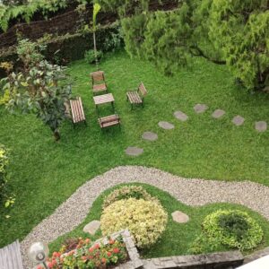 Bangunan 2 lt + 1 lantai bawah (service area, kamar pembantu, taman belakang)